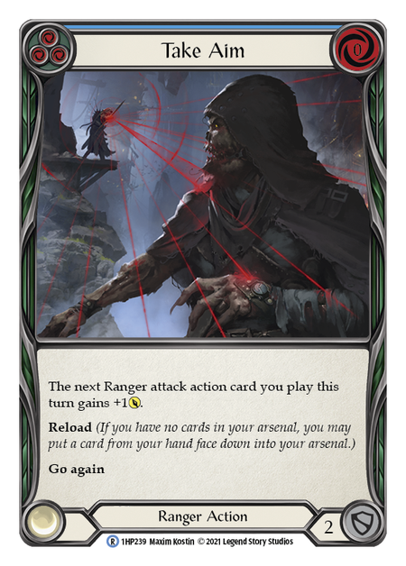 - The next Ranger attack action card you play this turn, gains +1{p}. Reload Go again