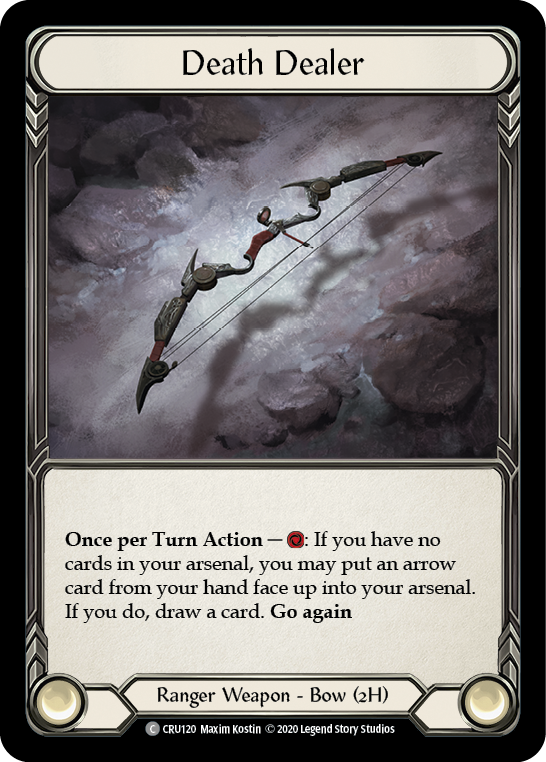 - Once per Turn Action - {r}: If you have no cards in your arsenal, you may put an arrow card from your hand face up into your arsenal. If you do, draw a card. Go again