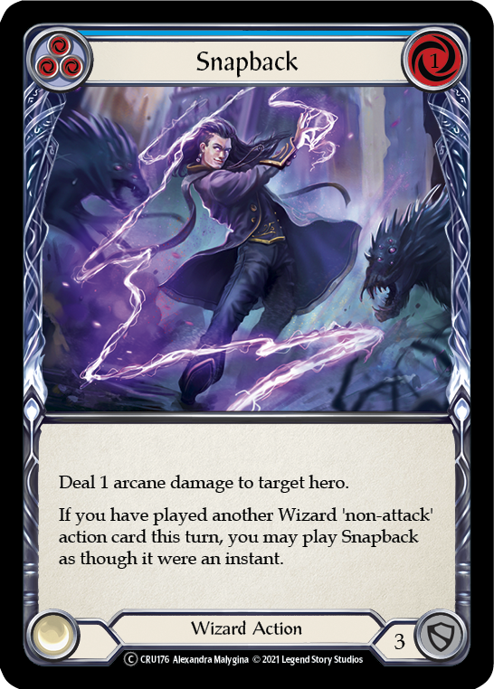 - Deal 1 arcane damage to target hero. If you have played another Wizard 'non-attack' action card this turn, you may play Snapback as though it were an instant.