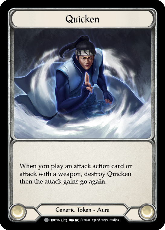 - When you play an attack action card or activate a weapon attack, destroy this and the attack gains go again.