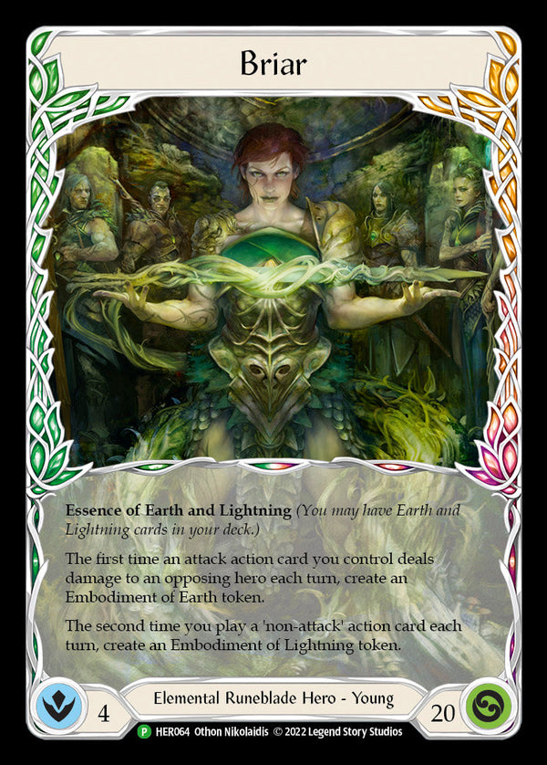 - Essence of Earth and Lightning The first time an attack action card you control deals damage to an opposing hero, create an Embodiment of Earth token. Whenever you play your second 'non-attack' action card each turn, create an Embodiment of Lightning token.