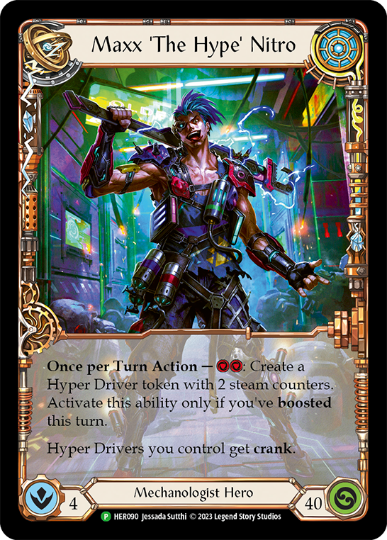 - Once per Turn Action - {r}{r}: Create a Hyper Driver token with 2 steam counters. Activate this ability only if you've boosted this turn. Hyper Drivers you control get crank.