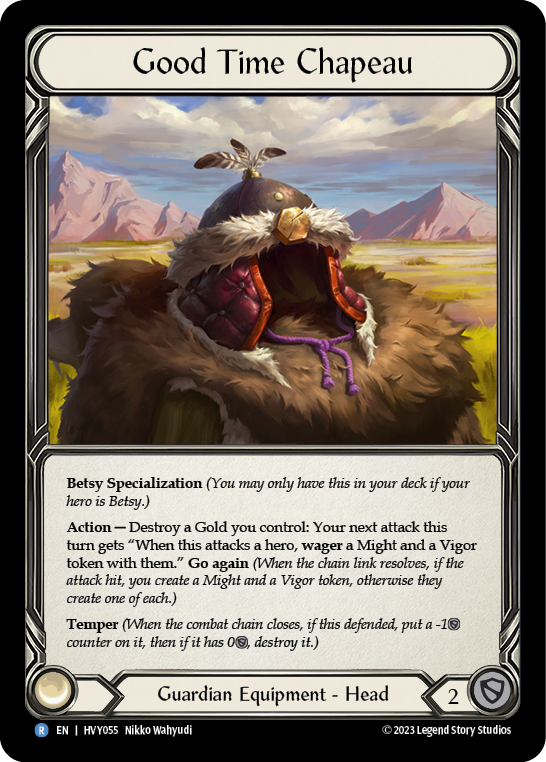 - Betsy Specialization Action - Destroy a Gold you control: Your next attack this turn gets "When this attacks a hero, wager a Might and a Vigor token with them." Go again Temper