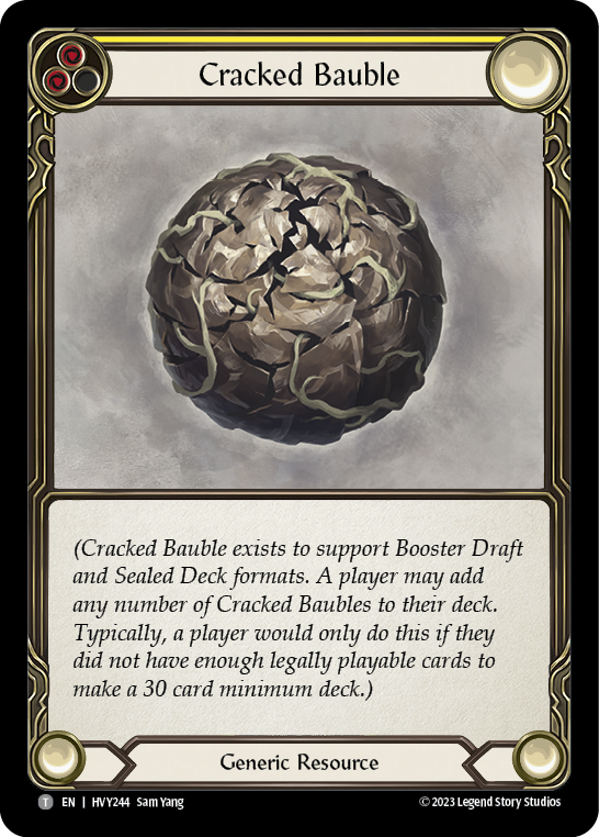- (Cracked Bauble exists to support Booster Draft and sealed Deck formats. A player may add any number of Cracked Baubles to their deck. Typically, a player would only do this if they did not have enough legally playable cards to make a 30 card minimum deck.)