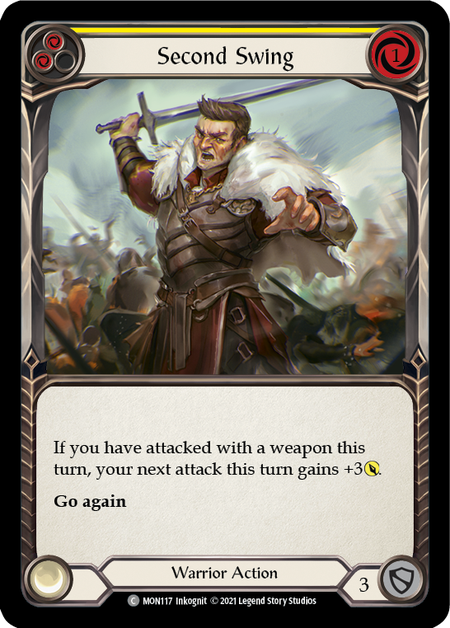 - If you have attacked with a weapon this turn, your next attack this turn gains +3{p}. Go again