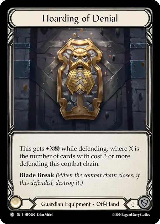 - This gets +X{d} while defending, where X is the number of cards with cost 3 or more defending this combat chain. Blade Break