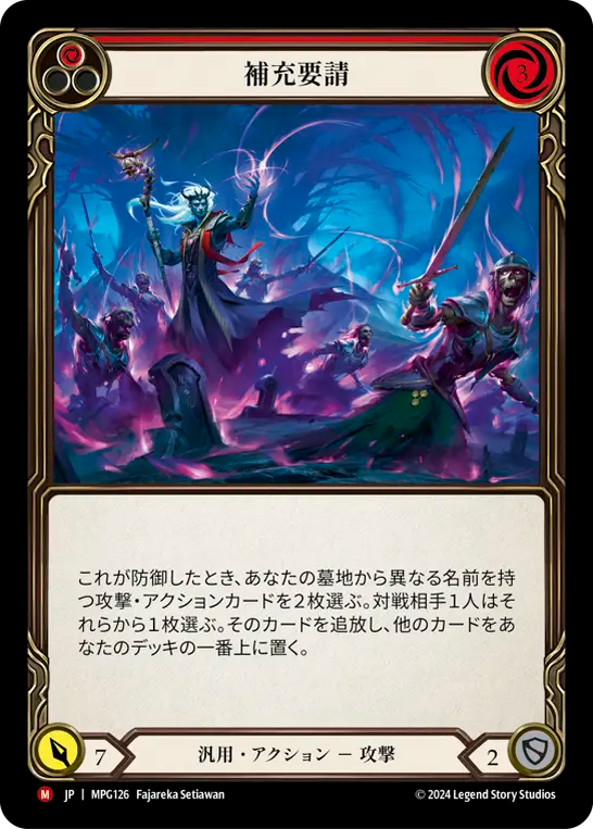 - When this defends, choose 2 attack action cards with different names in your graveyard. An opponent chooses 1 of them. Banish that card and put the other on top of your deck.