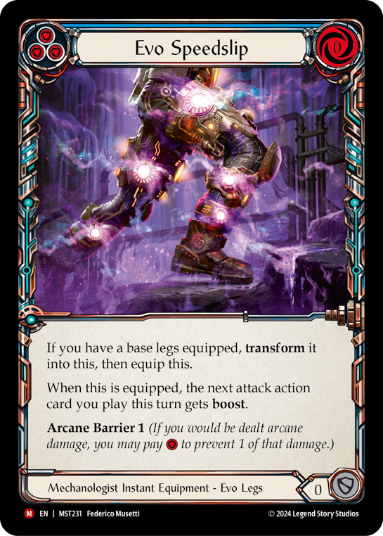- If you have a base legs equipped, transform it into this, then equip this. When this is equipped, the next attack action card you play this turn gets boost. Arcane Barrier 1