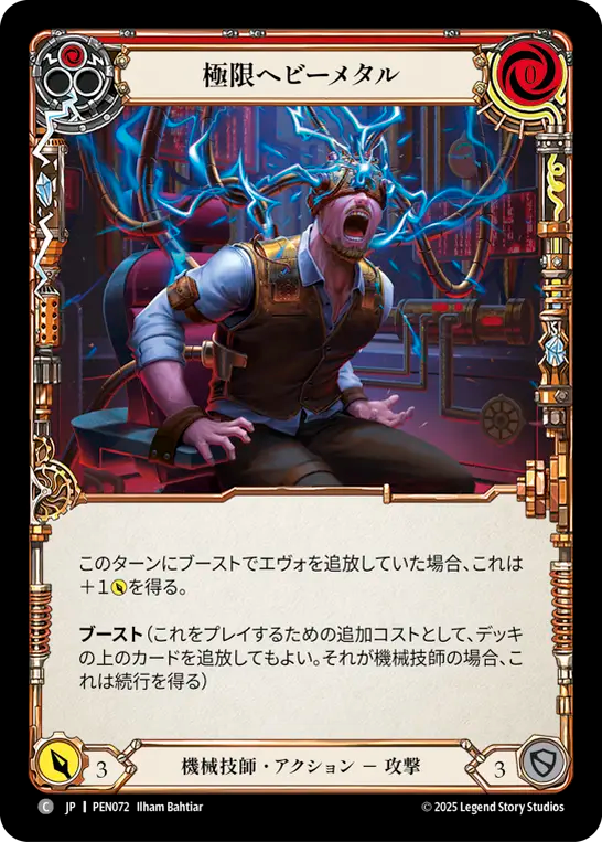 - このターンにブーストでエヴォを追放していた場合、これは+1{p}を得る。{br}**ブースト**(これをプレイするための追加コストとして、デッキの上のカードを追放してもよい。それが機械技師の場合、これは続行を得る)