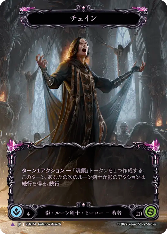 - **ターン1アクション**--「魂鎖」トークンを1つ作成する:このターン、あなたの次のルーン剣士か影のアクションは**続行**を得る。**続行**
