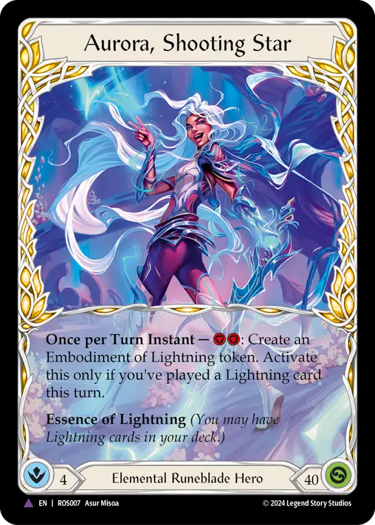 - Once per Turn Instant - {r}{r}: Create an Embodiment of Lightning token. Activate this only if you've played a Lightning card this turn. Essence of Lightning