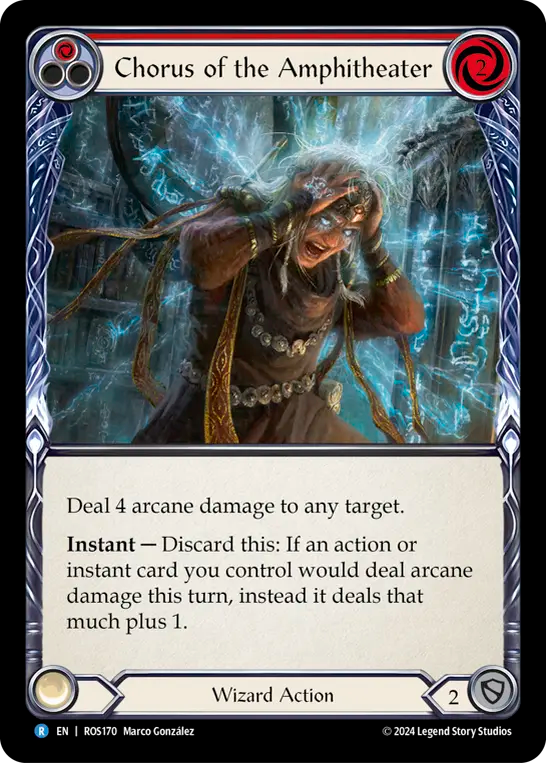 - Deal 4 arcane damage to any target. Instant - Discard this: If an action or instant card you control would deal arcane damage this turn, instead it deals that much plus 1.