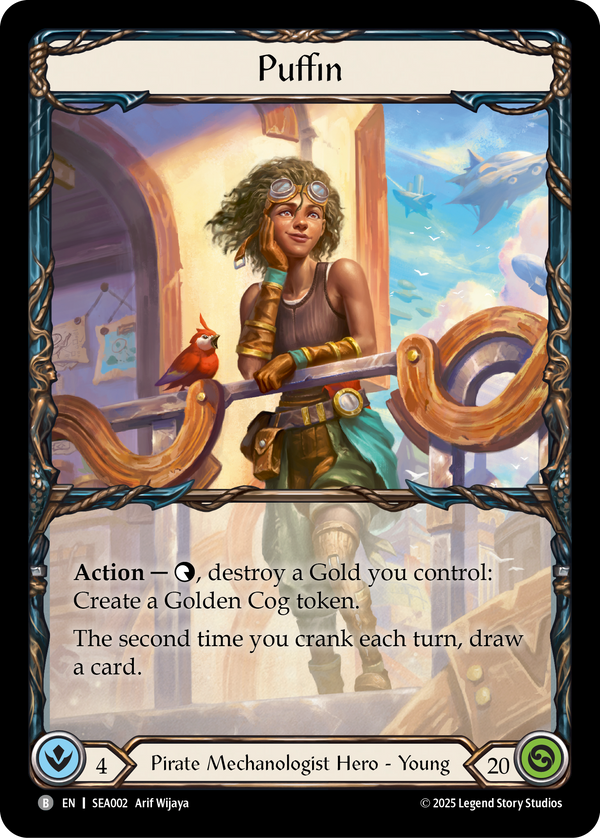 - Action - {t}, destroy a Gold you control: Create a Golden Cog token. The second time you crank each turn, draw a card.