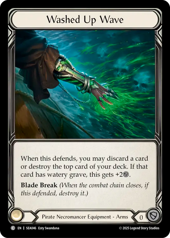 - When this defends, you may discard a card or destroy the top card of your deck. If that card has watery grave, this gets +2{d}. Blade Break