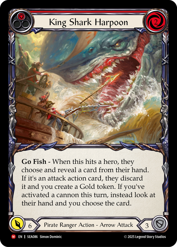 - Go Fish - When this hits a hero, they choose and reveal a card from their hand. If it's an attack action card, they discard it and you create a Gold token. If you've activated a cannon this turn, instead look at their hand and you choose the card.