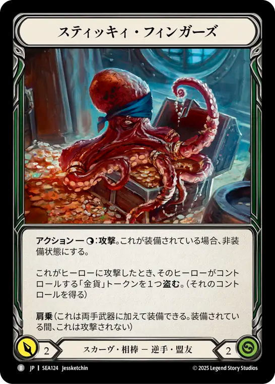 - Action - {t}: Attack. If this is equipped, unequip it. When this attacks a hero, steal a Gold token they control. Perched