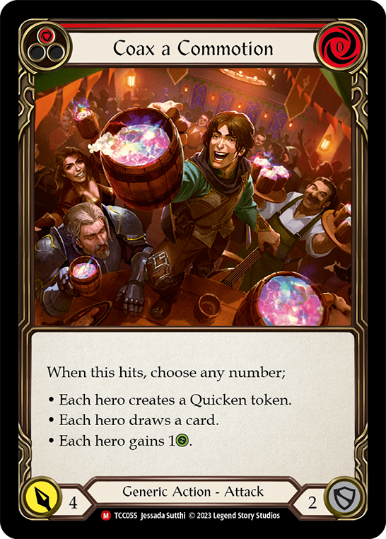 - When this hits, choose any number: Each hero creates a Quicken token. Each hero draws a card. Each hero gains 1{h}.